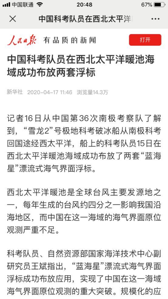 目前,漂流式海氣界面浮標已被自然資源部屬單位用于開展大洋與極地業務化觀測;被中國海洋大學、河海大學、中船、國防科大等科研院所用于開展科學觀測;被海軍研究院、海參海軍指揮保障大隊、北部與南部戰區海軍等多個軍方部門用于開展海上重大任務海洋環境保障。相關應用得到央視新聞、人民日報、新華社等權威國家媒體廣泛報道,社會影響良好。