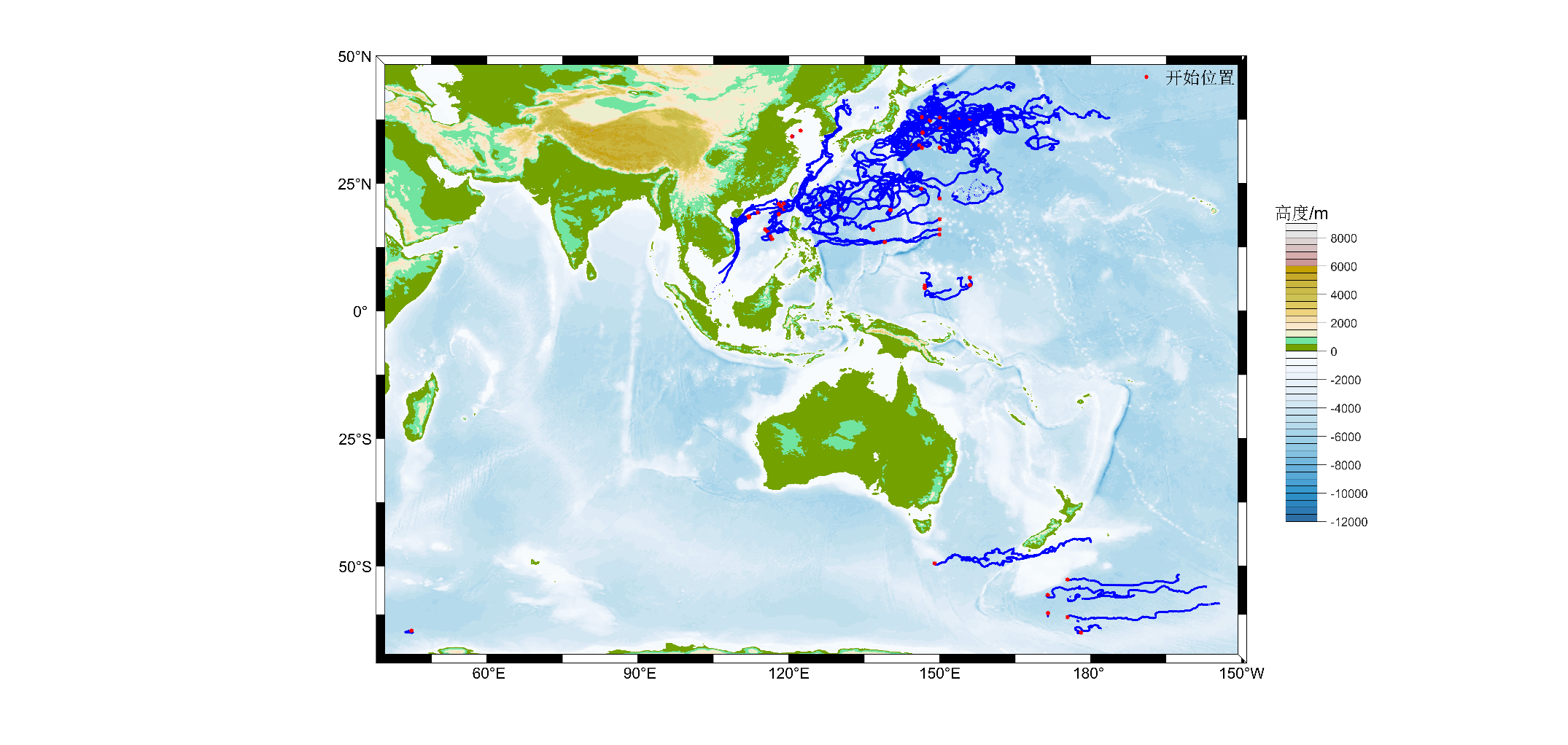 圖4 漂流式海氣界面浮標全球布放應用軌跡圖