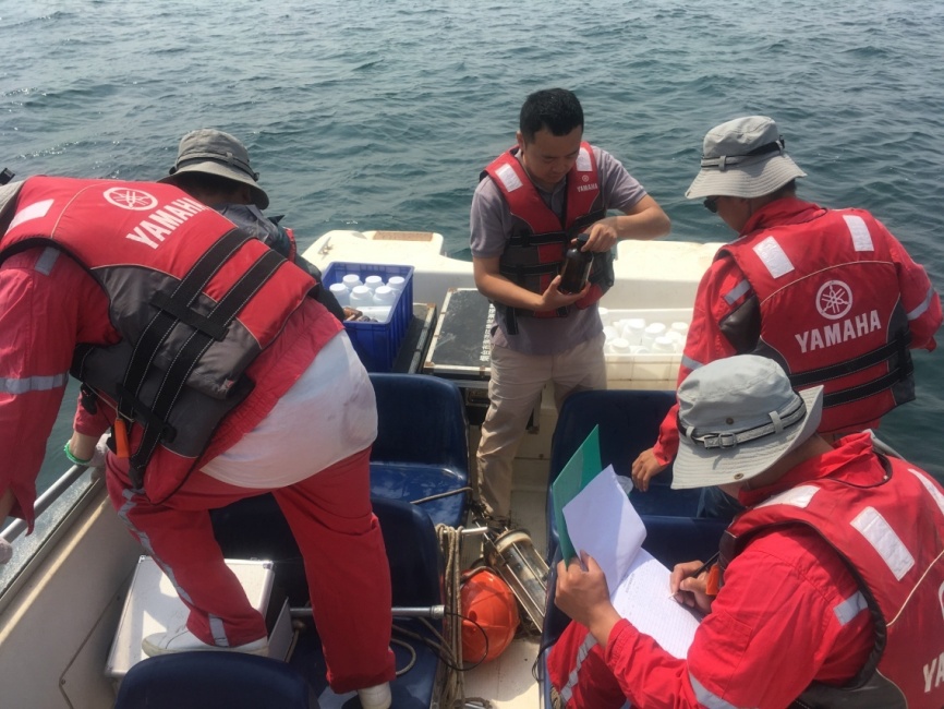 項目組按照《海洋環(huán)境本底調(diào)查實(shí)施方案》工作內(nèi)容及進(jìn)度安排,于近期赴煙臺開展了第1次海洋環(huán)境現(xiàn)場監(jiān)測,共采集了9個監(jiān)測站位的103個海水樣品,對營養(yǎng)鹽、懸浮物、石油類、硅酸鹽、葉綠素A等12個水質(zhì)項目進(jìn)行了分析化驗(yàn)。