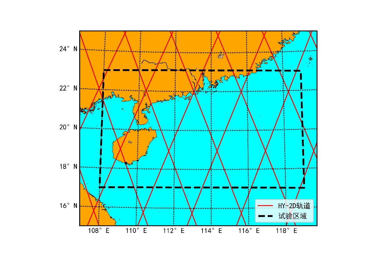 HY-2D衛星在軌測試試驗區域示意圖