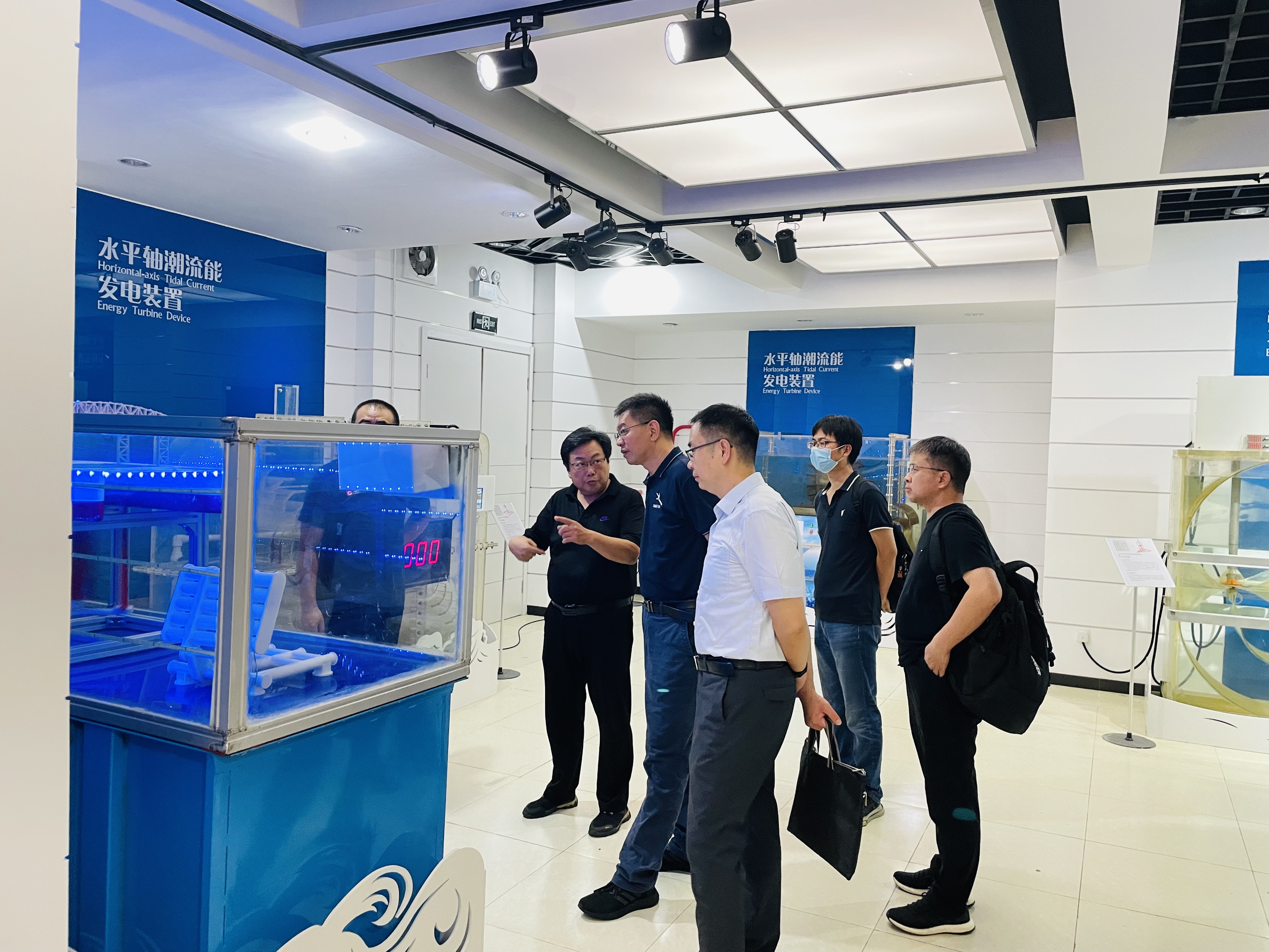來訪期間,朱立宏所長一行參觀了中心海洋動力環境實驗室和海洋能成果展室。(海洋能項目辦 陳利博)