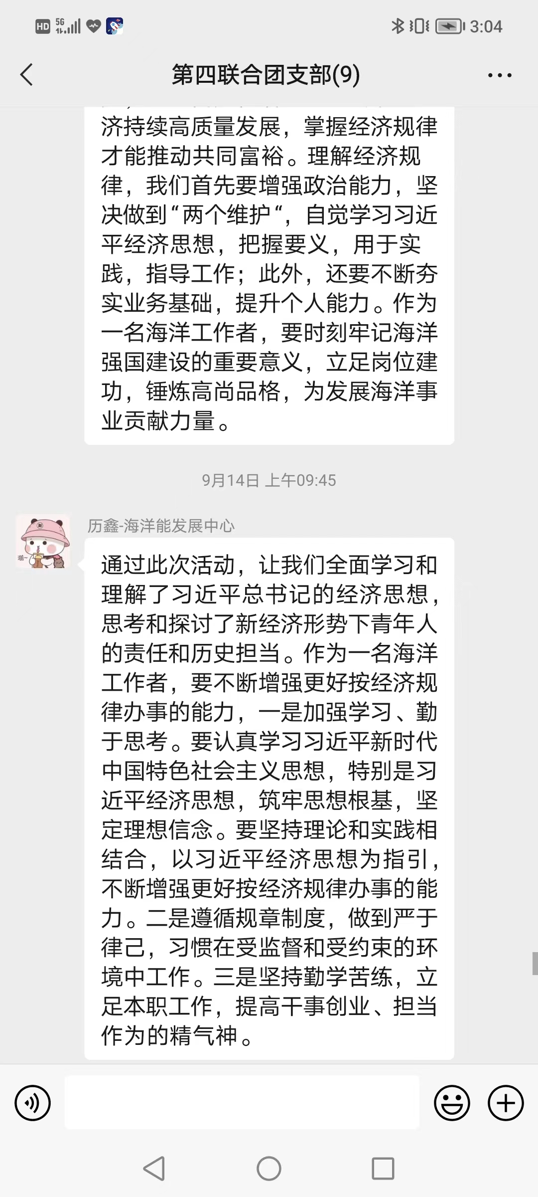 通過參加本次專題活動,支部團員紛紛表示,作為新時代的海洋青年,既要在書本上下功夫,深入學習習近平新時代中國特色社會主義思想的理論內涵和實踐要求,又要在工作中下功夫,更加科學認識經濟發展規律、更加準確把握自然內在規律,苦練本領、積極作為,為推動經濟與生態環境高質量協同發展貢獻青春力量。(第四聯合團支部 蘆穎)