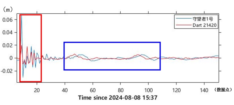 “守望者1號(hào)”海嘯浮標(biāo)于2024年6月15日在西北太平洋海域布放,已穩(wěn)定運(yùn)行兩個(gè)月。經(jīng)與距離“守望者1號(hào)”最近的美國21420站點(diǎn)“DART”海嘯浮標(biāo)數(shù)據(jù)比對(duì)分析,“守望者1號(hào)”的海平面高度測量分辨率、測量穩(wěn)定性、數(shù)據(jù)有效接收率均與“DART”處于同一水平。